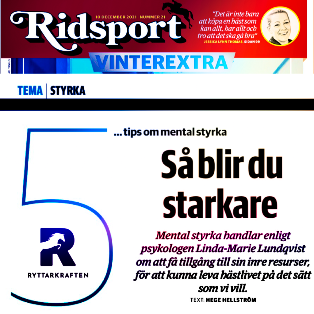 I nr 21 av Ridsport kan du läsa om mina tips för ökad mental styrka i ridningen. Superkul att detta ämne lyfts fram tycker jag! Mer psykologi åt hästfolket 🙂